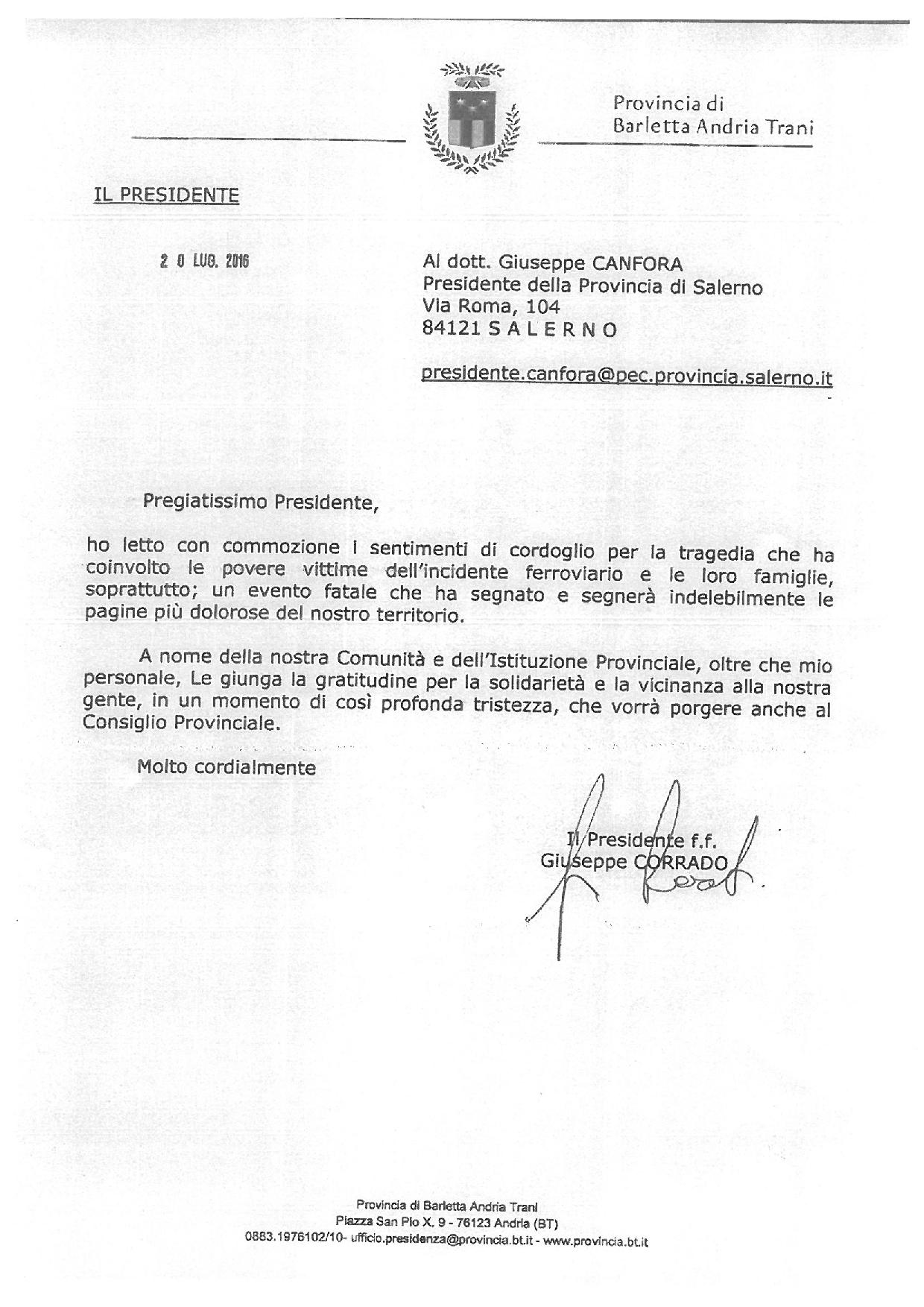 Lettera al presidente della provincia